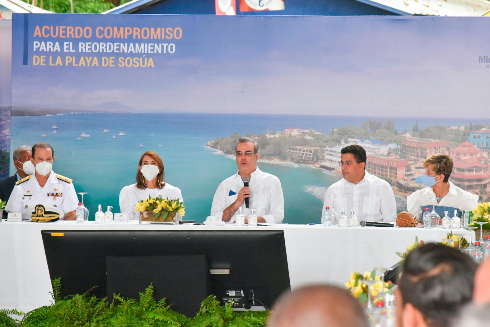 President Luis Abinader and the Minister of Tourism, David Collado, began the process of reorganizing Sosúa beach, with an investment of 600 million pesos. The work, carried out through the Infrastructure Execution Committee in Tourist Zones (CEIZTUR) of the Ministry of Tourism, will have a positive impact on commercial activity, will contribute to the proper handling and management of the beach and will encourage investment in that destination.